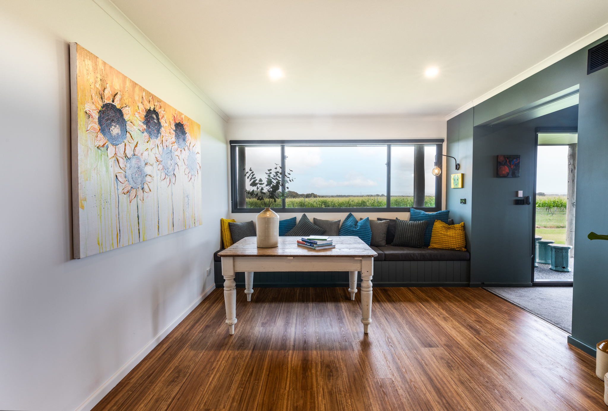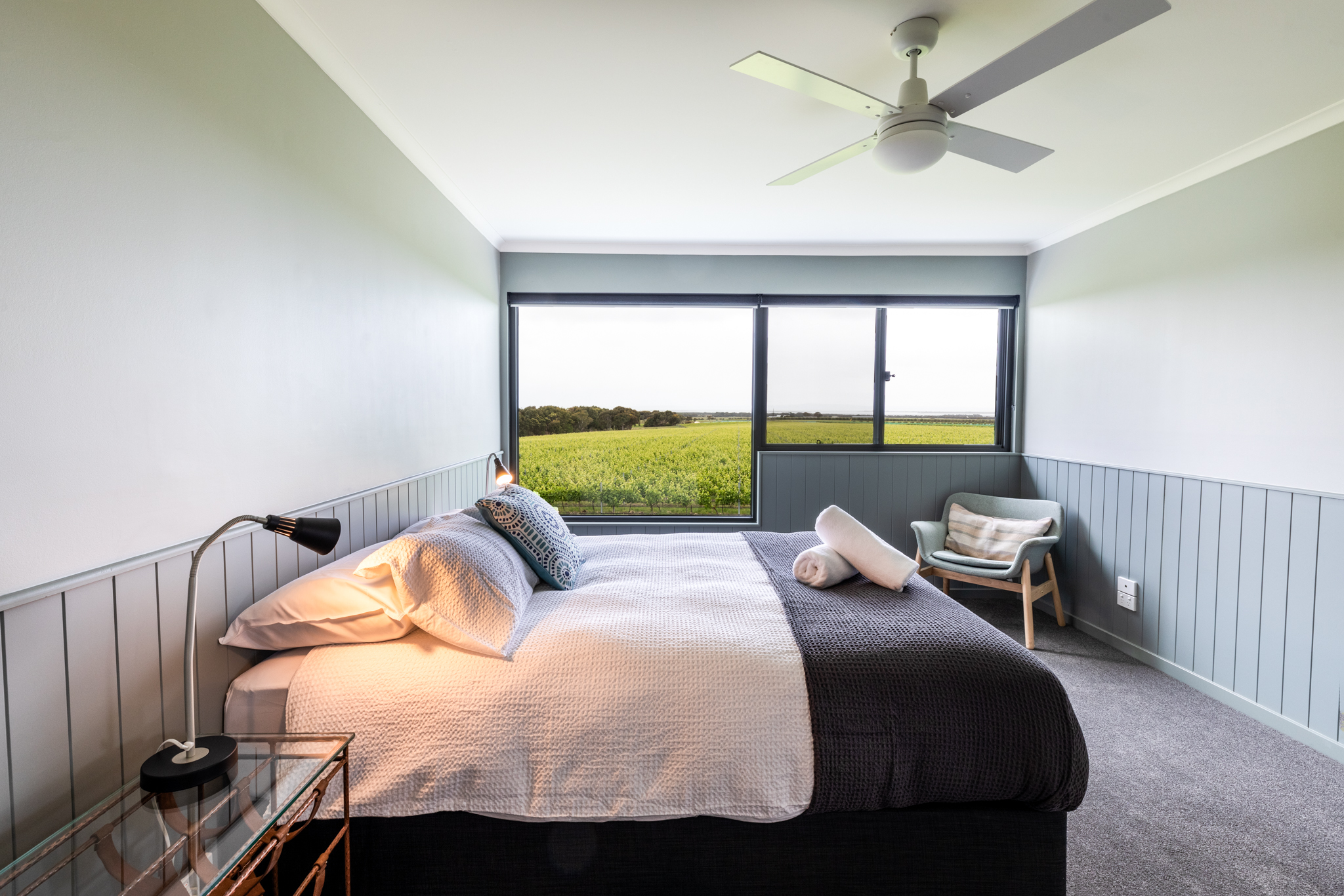 The Yellow House offers a peaceful retreat with views over Oakdene’s Mannerim vineyards and across Swan Bay. It’s the perfect spot to explore local wineries, savor fresh produce, or enjoy the coastal beauty, from stunning surf beaches to tranquil inlets.