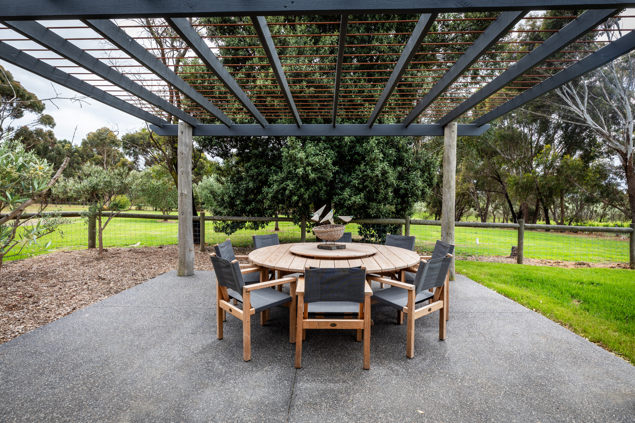With 5 spacious bedrooms, 3 bathrooms, a generous entertaining area including a BBQ, lounge room and fully equipped kitchen, it’s the ideal getaway for friends and family to relax and create memories together. Recently renovated, the house sits beside the expansive Shiraz vineyard, offering breathtaking views that stretch all the way to Queenscliff and the Mornington Peninsula.